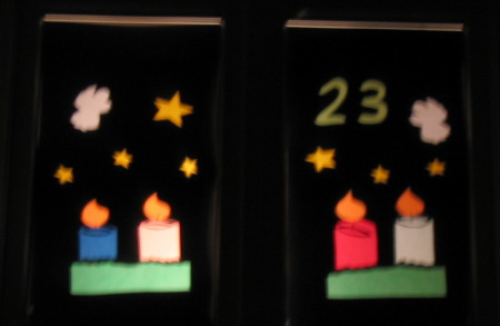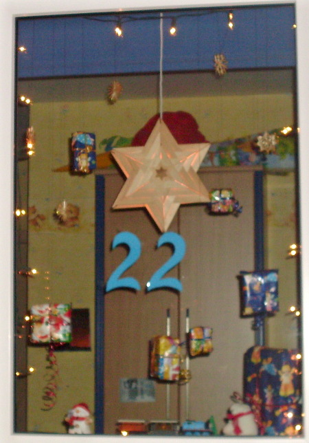 Hier finden Sie die Fenster aus dem Jahr 2006. Die Bilder sind von bescheidener Qualität, sollten aber zumindest einen kleinen Eindruck vermitteln. Ich habe die Fotos am 26.12. aufgenommen, da zu diesem Zeitpunkt nicht mehr alle Fenster beleuchtet waren, sind die Bilder nicht vollständig.